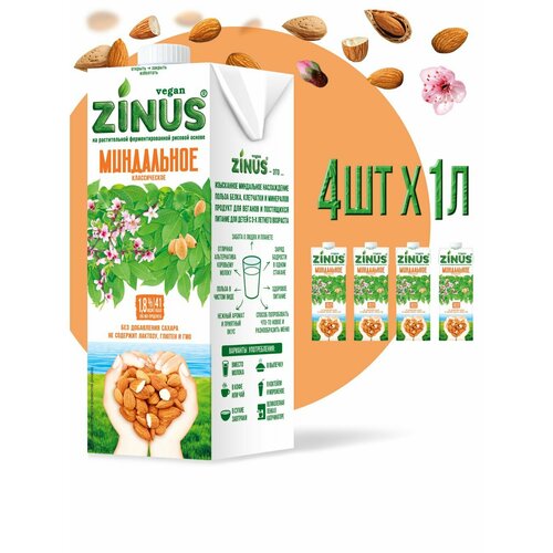 Zinus Vegan "Миндальное" 1,8%, 1л, ТВА/коробка 4шт/. Продукт на растительном сырье