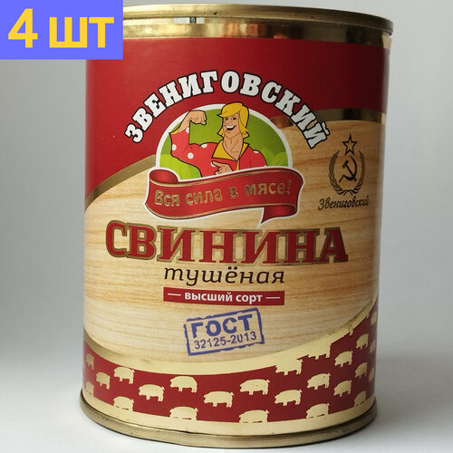 Свинина тушеная высший сорт ГОСТ, Звениговский Мясокомбинат, 338 г. 4шт