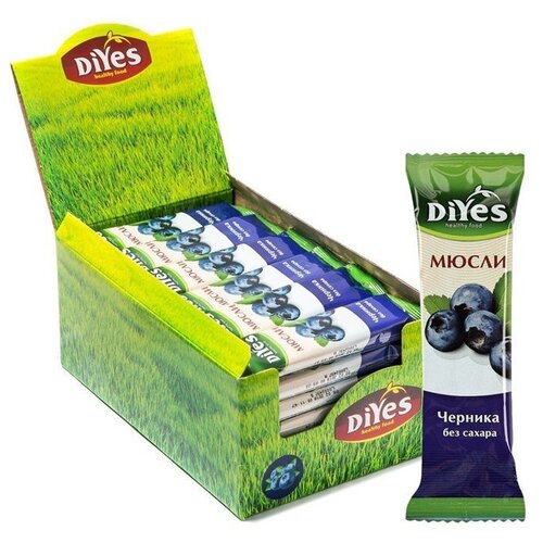 Батончик мюсли DiYes Черника — традиционный батончик мюсли без лишних ингредиентов, объединяющий в себе пользу злаков и фруктов.