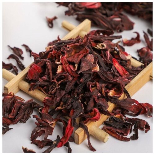 Чай "Каркаде", 50 г (+ — 5 г). 7055967. Каркаде — необычный травяной напиток из высушенных прицветников суданской розы, которая относится к роду гибискусов. Более популярен каркаде в странах Африки. Египтяне называли его напитком фараона, дарующим бессмертие и силу. Они считали, что заварка восстанавливает энергию и утоляет жажду во время сильной жары. Но, помимо этого, она имеет еще множество полезных функций, в том числе и расширение сосудов или противораковый эффект.