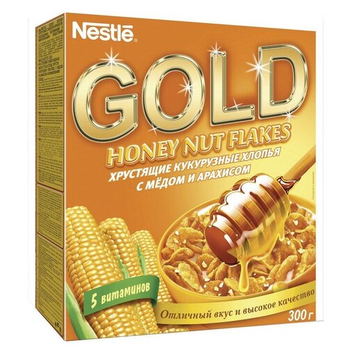 Завтрак Хлопья кукурузные Nestle Gold с медом и арахисом 300г