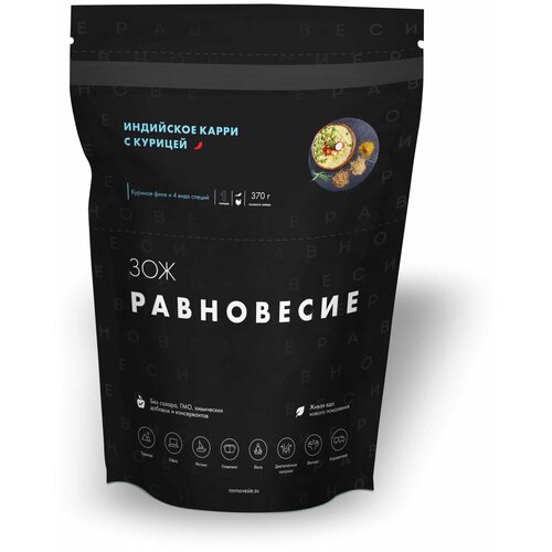 Состав: курица отварная, куриный бульон, рис с маслом сублимированный (рис вареный, масло, сахар, соль, специи), масло сливочное, фасоль стручковая, лук репчатый, карри специя, гарам масала, асафетида, молоко кокосовое сухое, мальтодекстрин, соль розовая гималайская, кориандр.