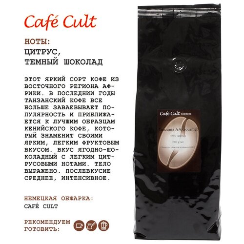 Этот яркий сорт кофе из восточного региона Африки. В последние годы танзанский кофе все больше завоевывает популярность и приближается к лучшим образцам кенийского кофе, который знаменит своими ярким, легким фруктовым вкусом. Аромат малины и темного шоколада. Вкус ягодно-шоколадный с легким цитросовыми нотами. Тело выражено. Послевкусие среднее, интенсивное