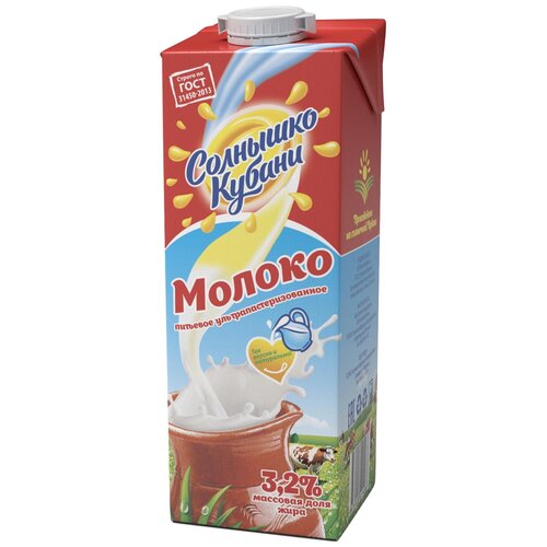 Молоко ультрапастеризованное "Солнышко Кубани" 3,2 % с крышкой ГОСТ Tetra Pak 1л EDGE