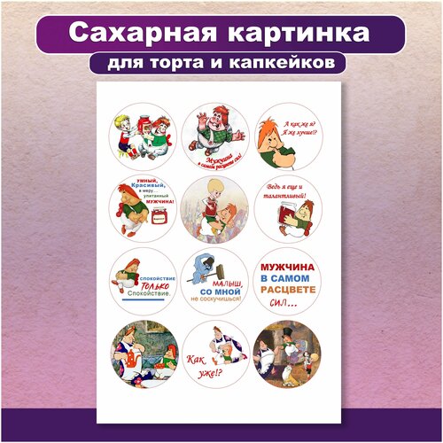 Сахарная картинка на торт или для капкейков печатается на сахарной и вафельной бумаге пищевыми красками (чернилами) на профессиональном кондитерском принтере. На съедобную бумагу нанесено изображение Карлсона с надписью "Мужчина в самом расцвете сил". Если нажмете на наш бренд Вкусняшки от Машки, то увидите картинки схожие по тематике, такие как "Вечно молодой, вечно недовольный…", "Ты особенный, потому что ты папа", "Лучший дедушка на свете", «Ты самый лучший…», «Папа ты наш герой» и другие интересные дизайны картинок. Съедобное фото картинка с любимым мульти героем вашего ребенка и с поздравление в виде надписей станет идеальным декором, который способен мгновенно преобразить внешний вид праздничной выпечки: пирожных, кексов, куличей, пряников, печенья, эклеров, капкейков, тортов, леденцов. Кондитерское изделие при выкладке на выпечку красиво сочетается с фигурками из мастики, ягодами, кондитерской посыпкой, драже, глазурью, шоколадом, золотом, топпер для декора и пр. Съедобной фотопечатью можно украсить торт любой формы, получится красочный, четкий и, что самое главное, яркий съедобный декор. Используя наши сахарные украшения для выпечки и тортов вы сможете сделать незабываемый подарок близким для мужа, сына, зятя, брата, дяди, мужчине, любимому, дедушке, деду, папе и подготовитесь к празднику День рождение, Новый год, Рождество, Юбилей, 9 мая День Победы, 23 февраля День защитника отечества, на Пасху. Сахарная картинка доставляется в надёжно упакованном в герметичный пакете и в плотном картонном конверт, который защитит заказ при транспортировке. В комплекте к сахарной картинке прилагается инструкция по применению и нанесению на торт капкейки и другие десерты. Пищевая печать для кондитера.