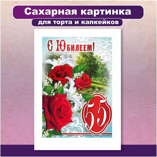 Сахарная картинка для торта и капкейков изображены поздравление "С днем рождения 55 лет юбилей". Украшение и декор торта выпечки. Сахарная бумага А4 / Вкусняшки от Машки