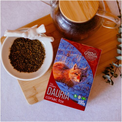 особенность линейки: без кофеина, без искусственных добавок и ароматизаторов, богат витаминами, 100% натуральный травяной чай, 100% дикорос 6 необычных вкусов на основе ферментированной лапчатки рябинколистной, перевод на пачке англ./русс. язык,-социальная значимость – с каждой проданной пачки чая линейки «Даурия» часть денежных средств перечисляется в Даурский заповедник для поддержки исчезающих видов птиц и животных, изображенных на пачке не является лекарственным средством.