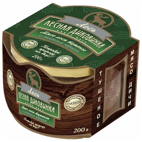 Состав: мясо лося, соль, перец черный, лавровый лист, перец зеленый горошек.