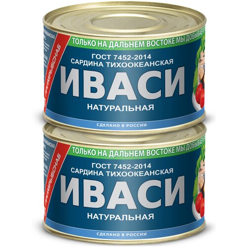Консервы рыбные "Примрыбснаб" — Сардина тихоокеанская натуральная иваси ГОСТ, 250 г — 2 шт
