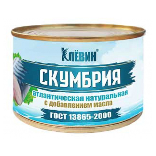 Скумбрия натуральная атлантическая с добавлением масла, Клёвин, 240гр