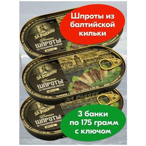 Шпроты в масле из балтийской кильки "За Родину" ГОСТ 175г с ключом — 3 банки