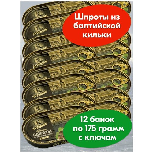 Шпроты в масле из балтийской кильки "За Родину" ГОСТ 175г с ключом — 12 банок