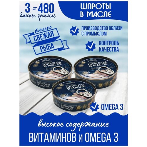 Шпроты хавиар в масле из балтийской кильки, 175 гр.,3 шт.