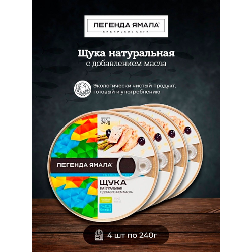 Щука Легенда Ямала натуральная с добавлением масла 240 г набор 4 шт