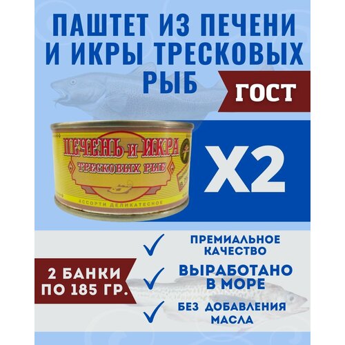 Паштет из печени и икры тресковых рыб ГОСТ / 2 шт по 185 гр