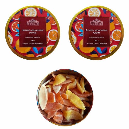 3 шт х 200 гр Карамель леденцовая Лимонно-апельсиновые корочки — Петербургская Коллекция