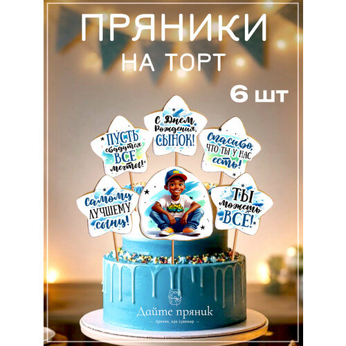 Имбирные пряники на торт мальчику с днем рождения, топпер на торт подростку