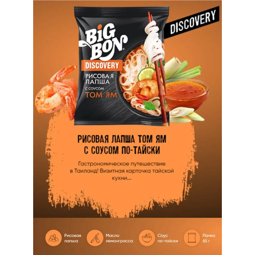 Лапша быстрого приготовления Big Bon Discovery Рисовая с соусом Том Ям 65 г — 50 штук