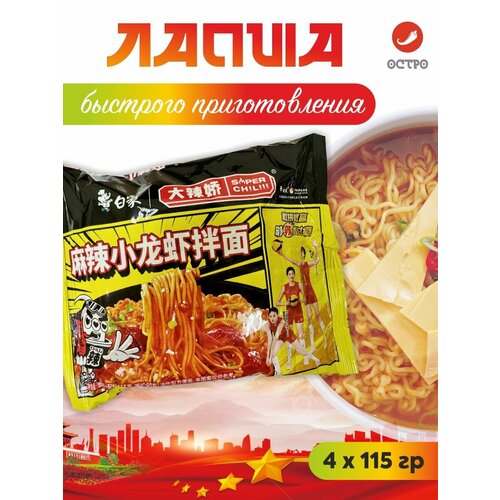 Лапша быстрого приготовления 4 шт / Острая с раками Желтая