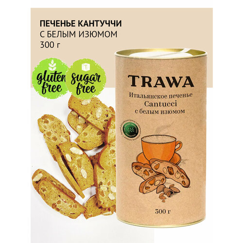 TRAWA Печенье Кантуччи с белым изюмом 300 гр / Полезный перекус / Без сахара и глютена