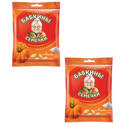 «Бабкины семечки», семечки тыквы отборные, жареные, с морской солью, 2 пачки по 70 г