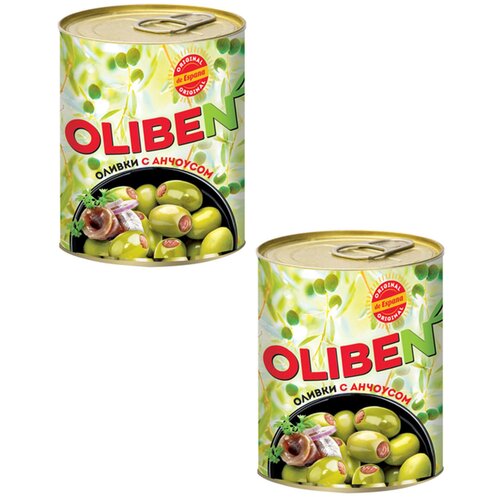 «OLIBEN», оливки крупные с анчоусами, 2 шт по 270 г
