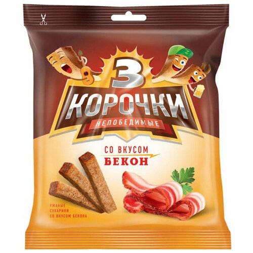 Упаковка 60 штук Сухарики ржаные "3 корочки" бекон 40г