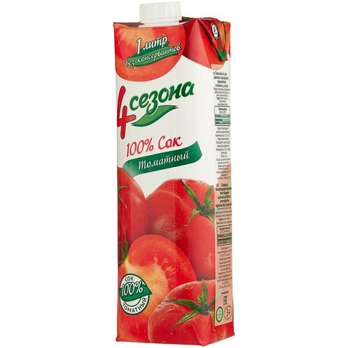 Сок "4 Сезона" Томатный 1 л. 12 шт/кор (призма) 1шт.