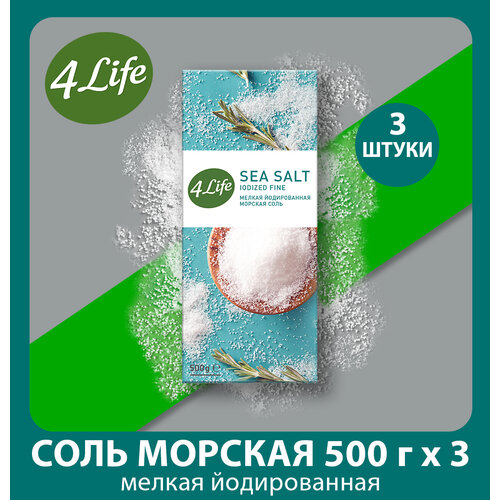 4Life соль морская йодированная; мелкий; 500 г; картонная коробка; 3 уп.