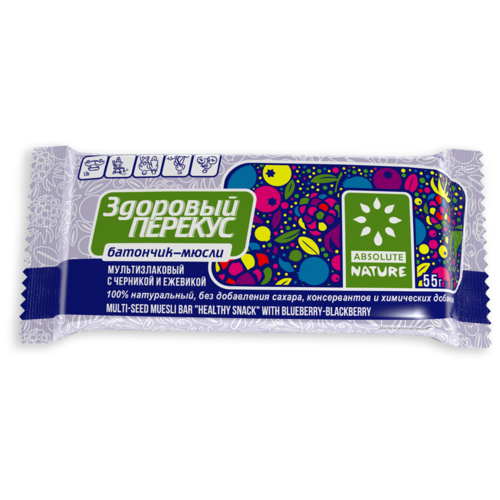 Absolute Nature Батончик-Мюсли с Черникой и Ежевикой Здоровый Перекус 55гр