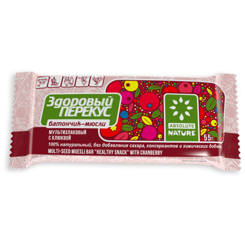Absolute Nature Батончик-Мюсли с Клюквой Здоровый Перекус 55гр