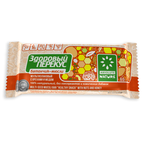 Злаковый батончик Absolute NATURE Здоровый перекус с орехами и мёдом 60 г