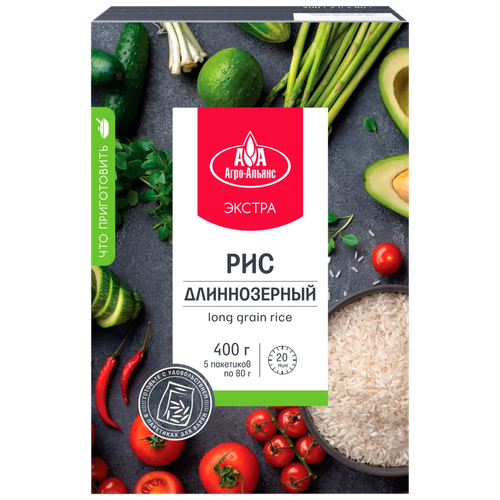 Рис длиннозерный "Агро-Альянс Экстра" в пакетиках для варки 400г (5*80г)
