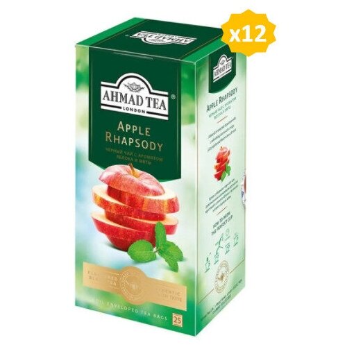Чай в пакетиках Ахмад AHMAD TEA Эппл Рапсоди, 12 упаковок по 25 пакетиков