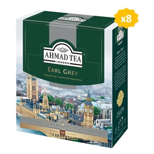 Чай в пакетиках Ахмад AHMAD TEA Эрл Грей, 8 упаковок по 100 пакетиков
