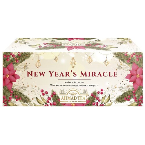 N078 Чай "Ahmad Tea", Ассорти Чайное "Новогоднее чудо", пакетики в конвертах, 3 вкуса (30 пак)