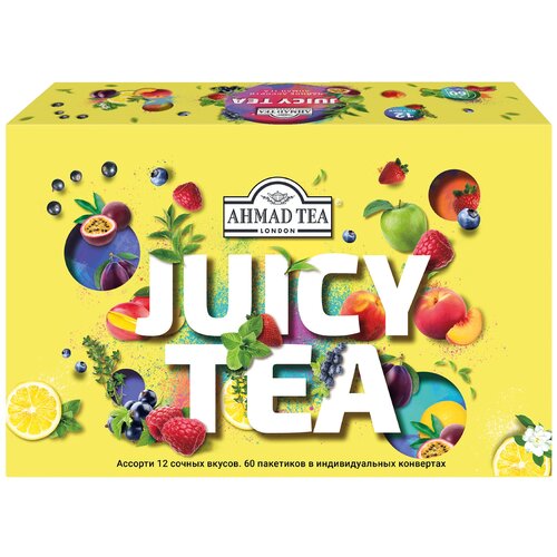 N074 Чай "Ahmad Tea", Ассорти Чайное "Джуси Ти", пакетики в индивид. конвертах, 12 вкусов, (60 пак)