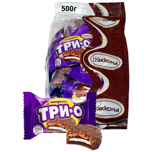 Акконд/Конфеты трио с печеньем, карамелью начинкой со вкусом пломбира 500г.,орео/Вкус, знакомый с детства.