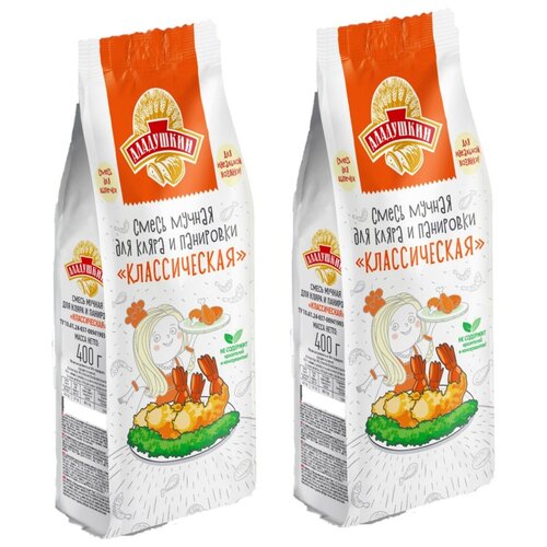 Аладушкин Смесь для кляра и панировки "Классическая", 2 шт по 400гр