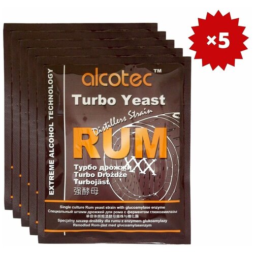 Спиртовые дрожжи Alcotec Rum Turbo с глюкоамилазой для приготовления рома, 73 г, 5 шт.