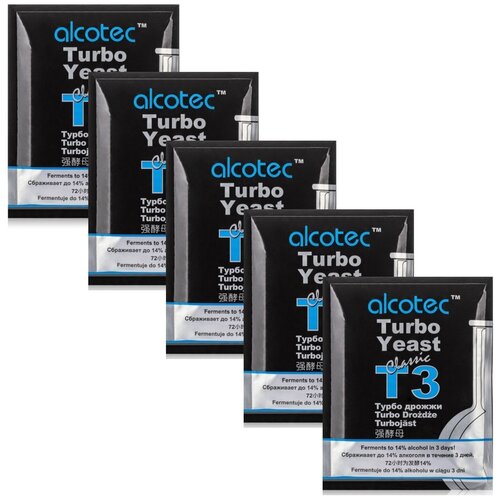 Спиртовые турбо дрожжи Alcotec Turbo T3/ Алкотек Т3 дрожжи для самогона, для браги, для виски/ (комплект из 5 шт)