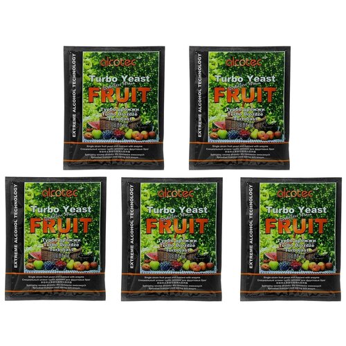 Спиртовые турбо дрожжи для самогона Alcotec Fruit turbo, (5 пачек). Турбо дрожжи для фруктовых браг