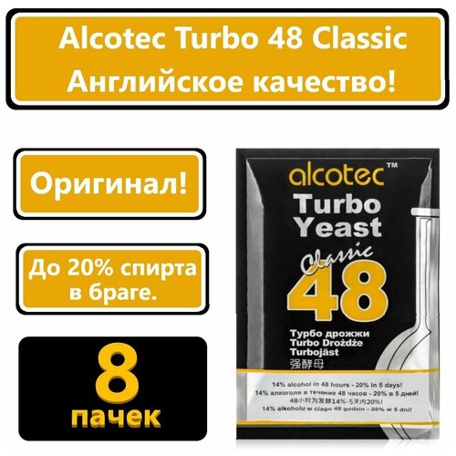 Спиртовые турбо дрожжи Alcotec Classic 48 Turbo/ Алкотек 48 дрожжи для самогона, для браги, для виски/ (комплект из 8 шт)