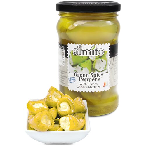 Зеленый перец фаршированный сырным кремом 320 мл, cт/б "ALMITO"