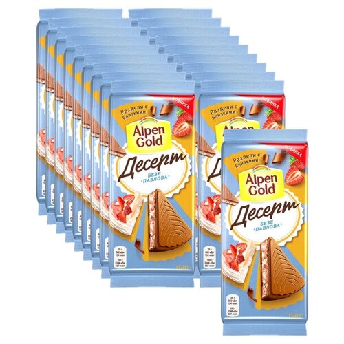 Молочный шоколад Alpen Gold Альпен голд Десерт Безе Павлова с клубничной, 150г х 16 шт