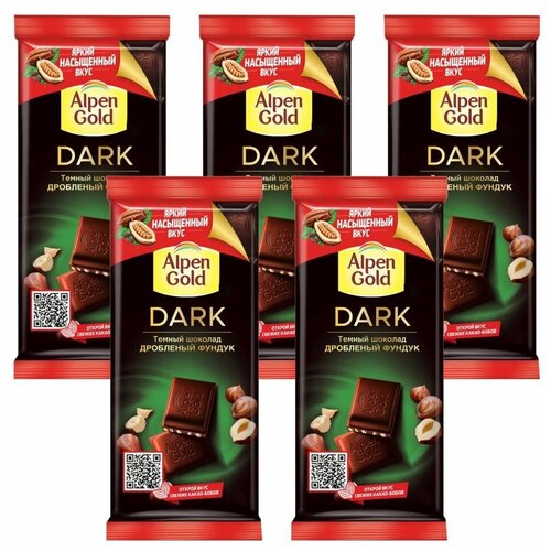 ALPEN GOLD шоколад темный дробленый фундук 80г Набор по 5шт