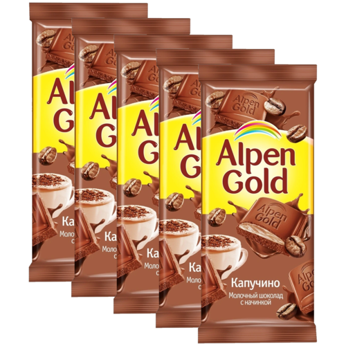 Alpen Gold Шоколад молочный с начинкой со вкусом капучино, 5 шт по 85 г