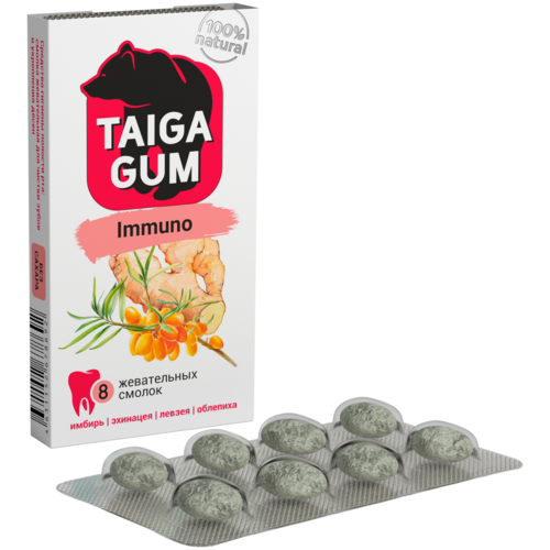 Смолка TAIGA GUM "IMMUNO" (для иммунитета) в растительной пудре, без сахара / 2 упаковки