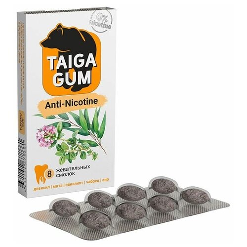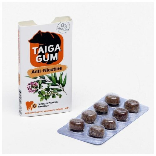Смолка против курения Taiga gum, в растительной пудре, без сахара, 8 штук
