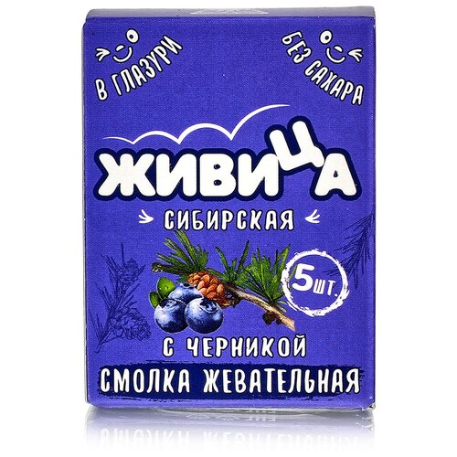 Смолка жевательная "Живица Сибирская" в глазури без сахара (с черникой и пчелиным воском 5шт по 0.8г